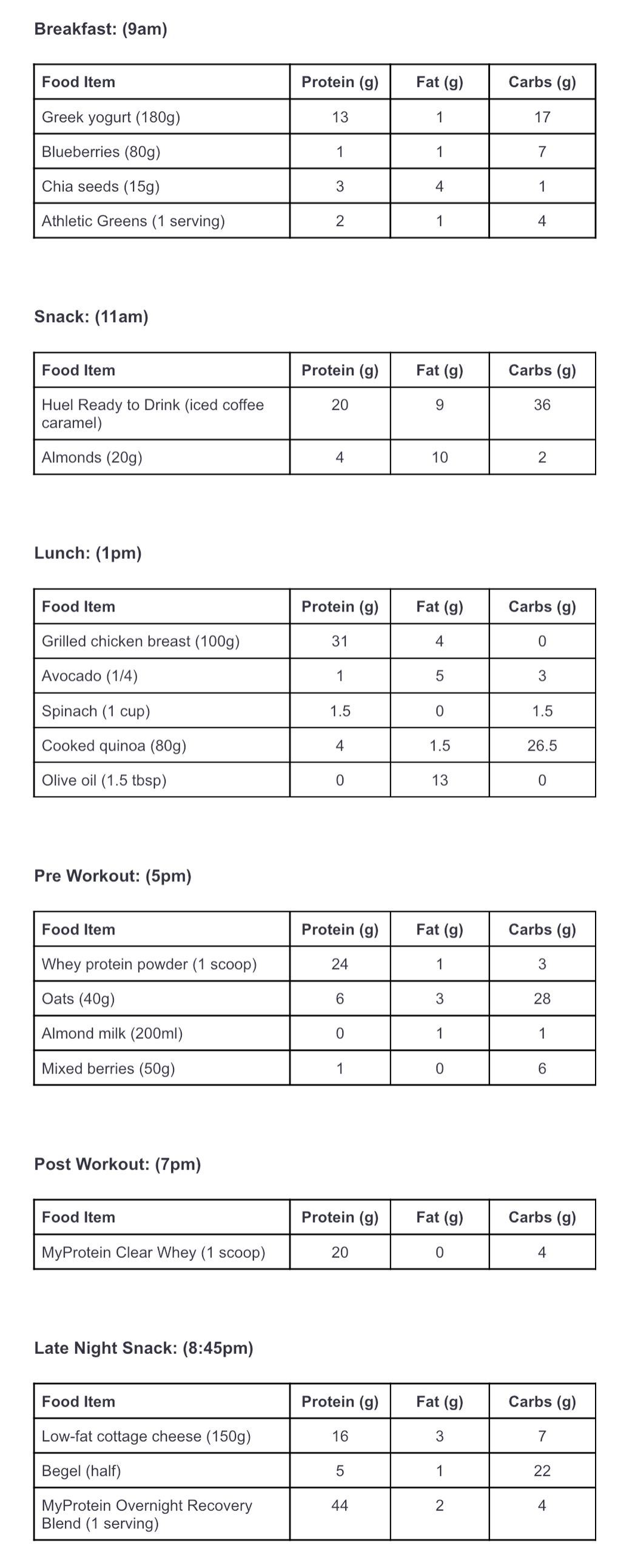 Keep in mind, the plan will need adapting over the 6 weeks as your body adapts to the fat loss!