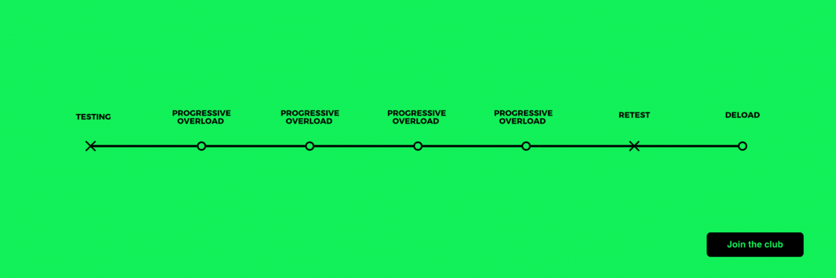 Keep the testing week the same structure as you’re going to do it in the progressive overload weeks to keep familiarity.
